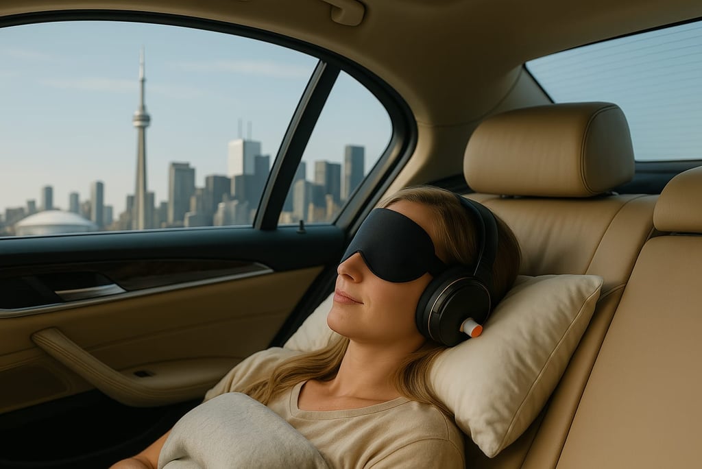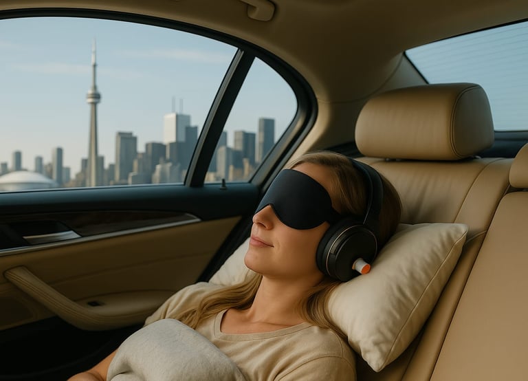 Toronto Layover brings private-jet comfort to every ride—slip on noise-cancelling earplugs, eyeshades, plush pillows and drop-off blankets to create your personal sanctuary in motion.